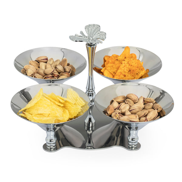 The 4 Piece Snack Bowl Butterfly Handle Saray by Bonna is a beautifully designed ceramic bowl that combines functionality with elegance. Its unique butterfly handle adds a charming touch, making it perfect for serving snacks at any gathering. With a diameter of 27 cm and a height of 15 cm, this bowl is ideal for both casual and formal settings.