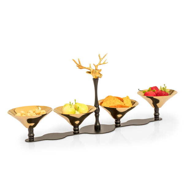 4 Slot Snack Stand with Deer Handle Black Static-Gold