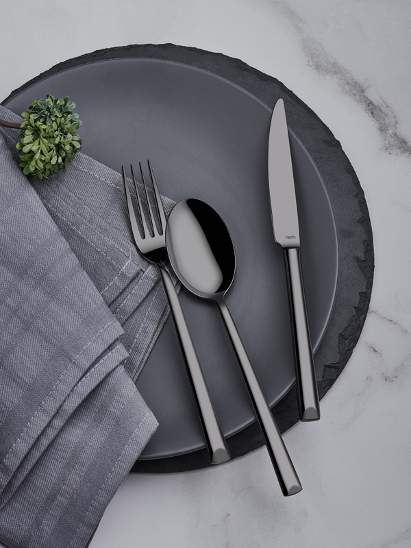 The Antares Series in Anthracite Titanium offers a comprehensive cutlery set made from high-quality 18/10 Cr-Ni stainless steel, ensuring durability and resistance to corrosion. This elegant collection is dishwasher safe and comes with a 25-year warranty against manufacturing defects, making it a reliable choice for any dining experience.