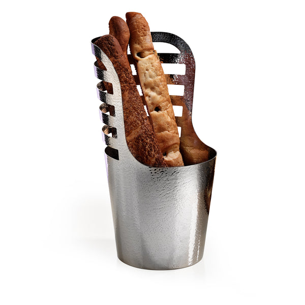 The Armchair Baguette Bread Holder offers a stylish and elegant solution for displaying baguettes at your bread buffets. With its luxurious Titanium PVD coating available in copper, gold, and rainbow finishes, this holder not only enhances the presentation but also ensures durability and ease of use. Elevate your dining experience with this sophisticated addition to your tableware.