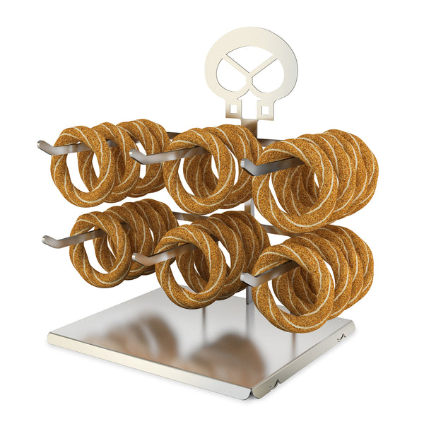 The Bagel Stand is an elegant serving accessory designed to enhance your breakfast buffet experience. Made from high-quality 304 stainless steel, it features a stunning Titanium PVD coating available in copper, gold, and rainbow finishes. With its six-arm design, this stand not only provides a stylish display for bagels but also ensures that your guests enjoy a delightful breakfast presentation.