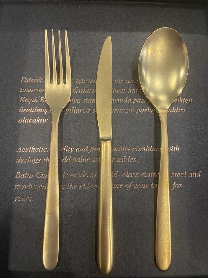 Batta Mahila 5100 Titanium Matte Gold 18 Piece Dinner Fork Spoon Knife Set