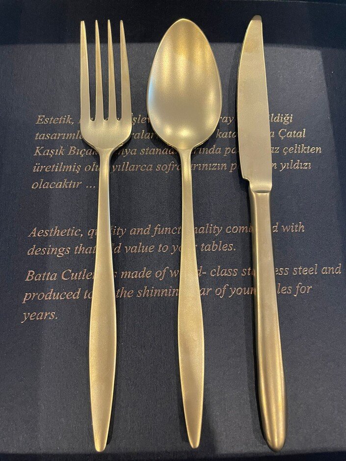 Batta Mahila 5600 Titanium Matte Gold 84 Piece Cutlery Set