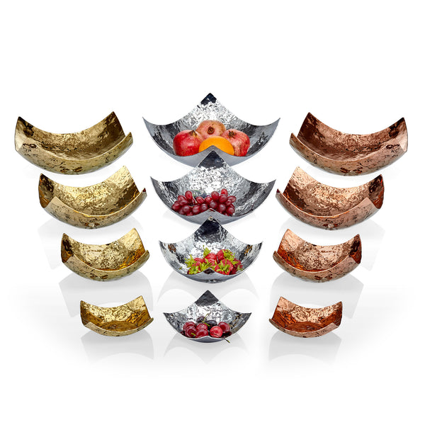 The Bera Slope Square is an elegant presentation piece designed for those who appreciate square details. Its unique sloped design enhances visibility for the items displayed within. Crafted with a forged surface and available in various titanium PVD coating options, including copper, gold, and rainbow, this durable piece is built to last for years.