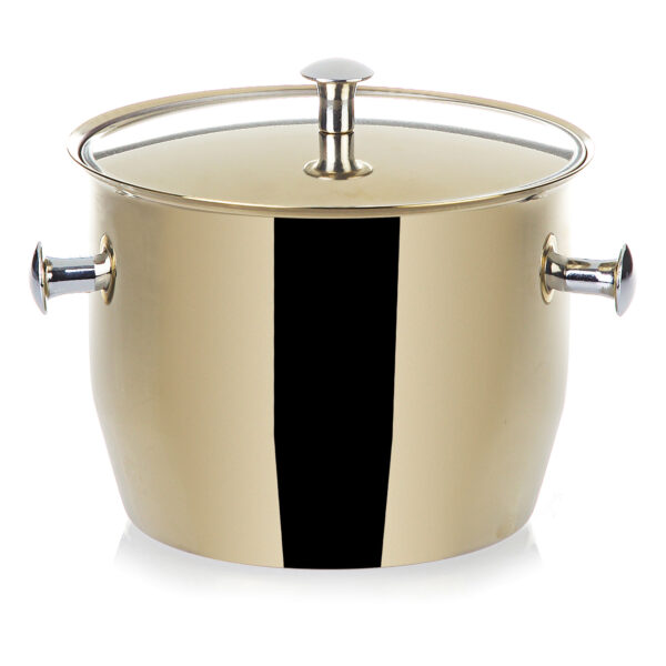 The Biradli Steel Serving Bucket in a stunning gold finish is perfect for serving snacks, holding small items, or as a mini ice bucket. Its elegant design adds a touch of luxury to any table setting, making it an ideal choice for upscale dining experiences.