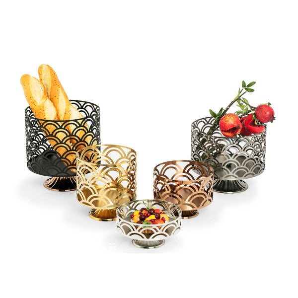 The Bread Baguette Rainbow Ida Foot is a versatile serving accessory designed to elegantly present baguettes. Its round structure not only allows for a stylish display but also serves as a functional fruit bowl or riser. Available in stunning Titanium PVD Coating options including gold, copper, and rainbow, it adds a touch of sophistication to any dining setting.