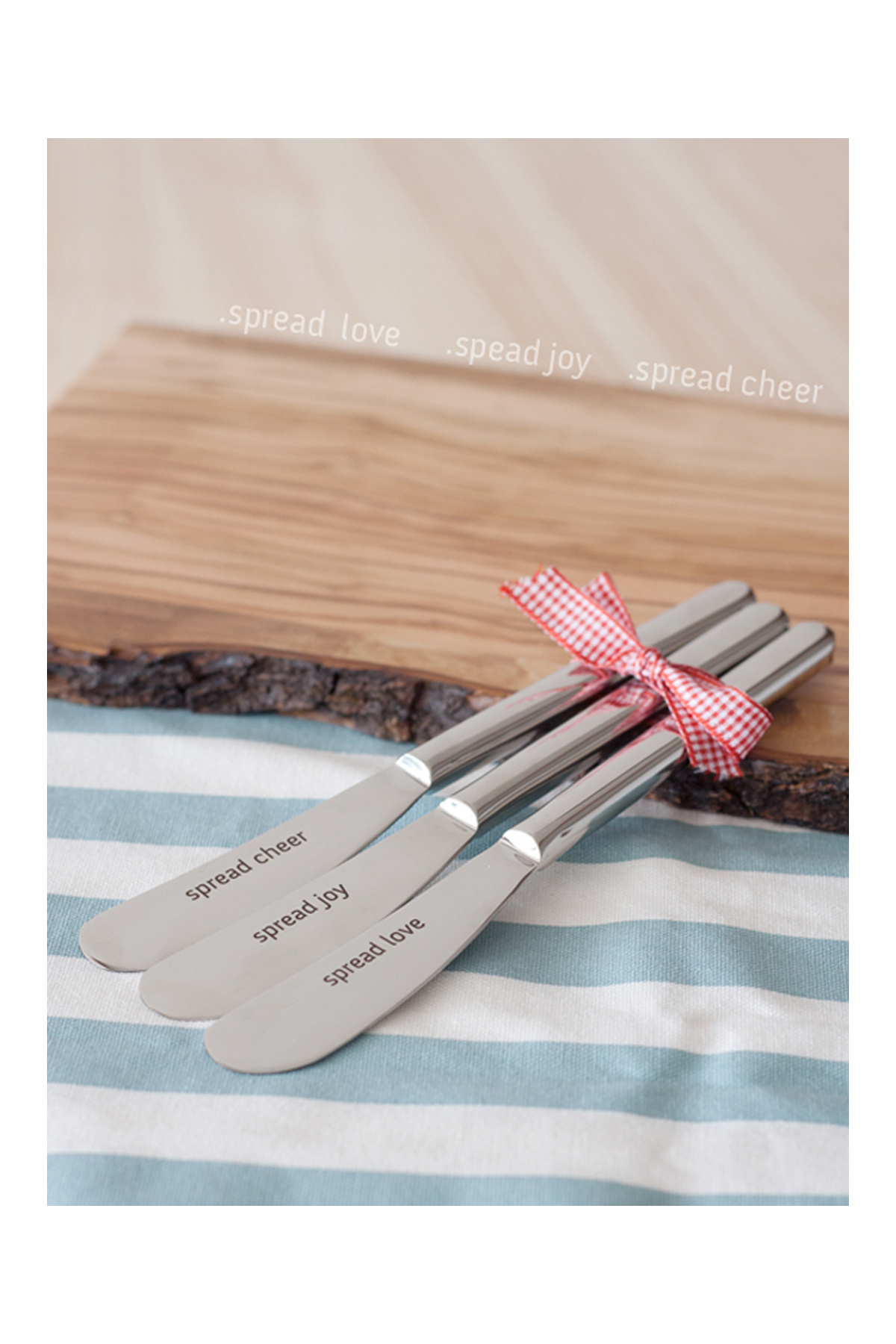 The WMF Butter Knife set includes six elegantly designed knives, each featuring inspiring phrases like 'spread love', 'spread joy', and 'spread cheer'. Crafted from high-quality 18/10 stainless steel, these knives are resistant to corrosion and dishwasher safe, ensuring long-lasting durability. The laser-engraved writings add a unique touch, making them perfect for any dining occasion.