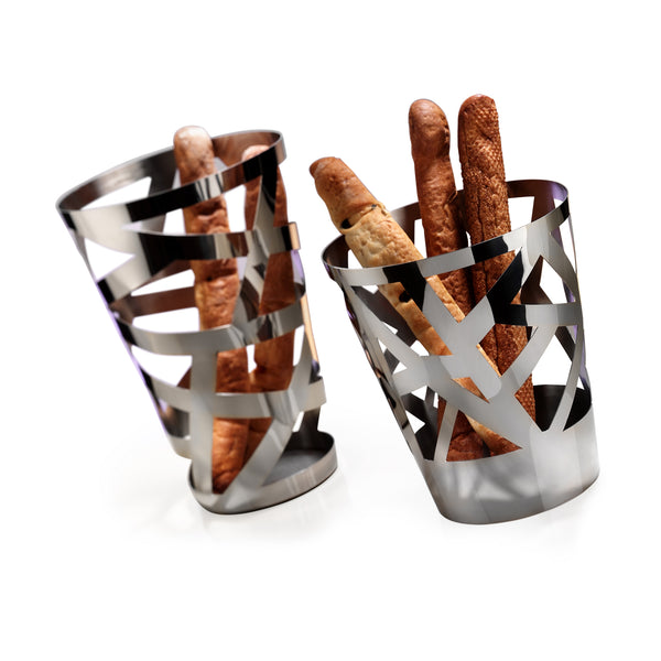 The Conical Baguette Bread Holder is designed to elevate your bread buffets with its stylish appearance. Featuring a durable Titanium PVD Coating, this holder is available in elegant color options including copper, gold, and rainbow. Its unique conical shape not only enhances presentation but also ensures that your baguettes are displayed comfortably and attractively.