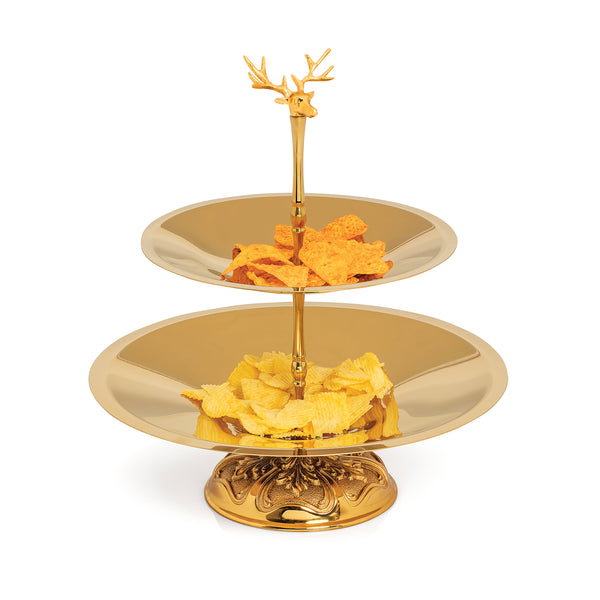 Conical Gold Bowl Deer Handle 2-Storey Royal Foot