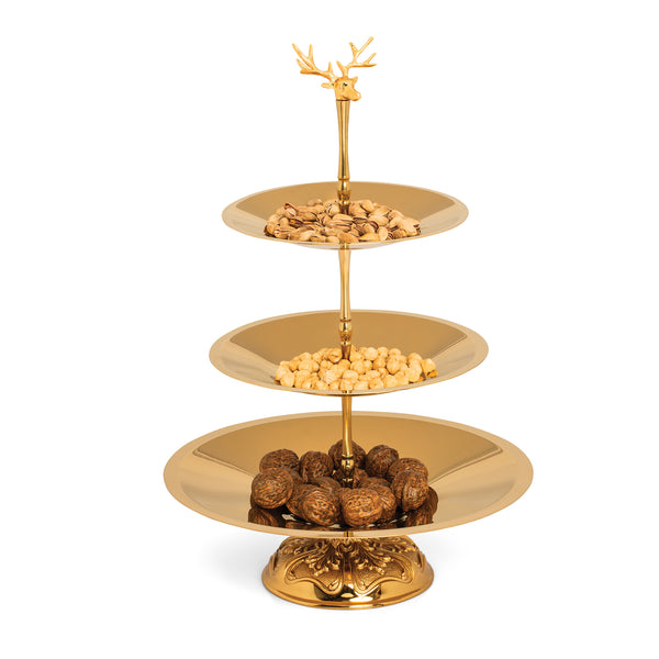 Conical Gold Bowl Deer Handle 3 Layer Royal Foot