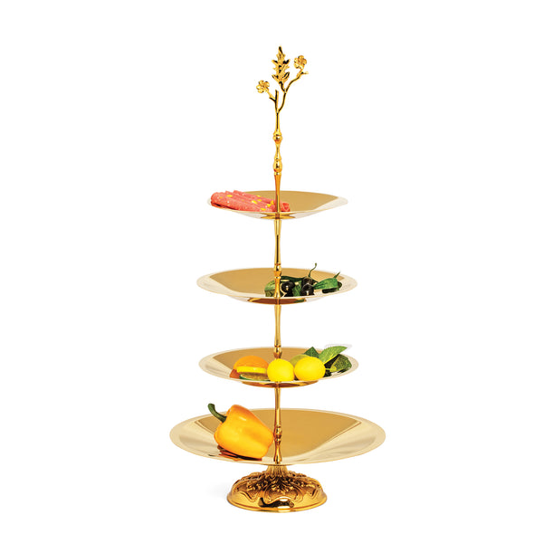 Conical Gold Bowl Flower Handle 5 Layer Royal Foot