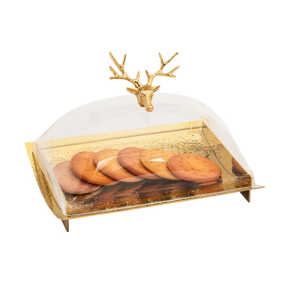 Covered Room Fruit Bowl Deer Handle Gold