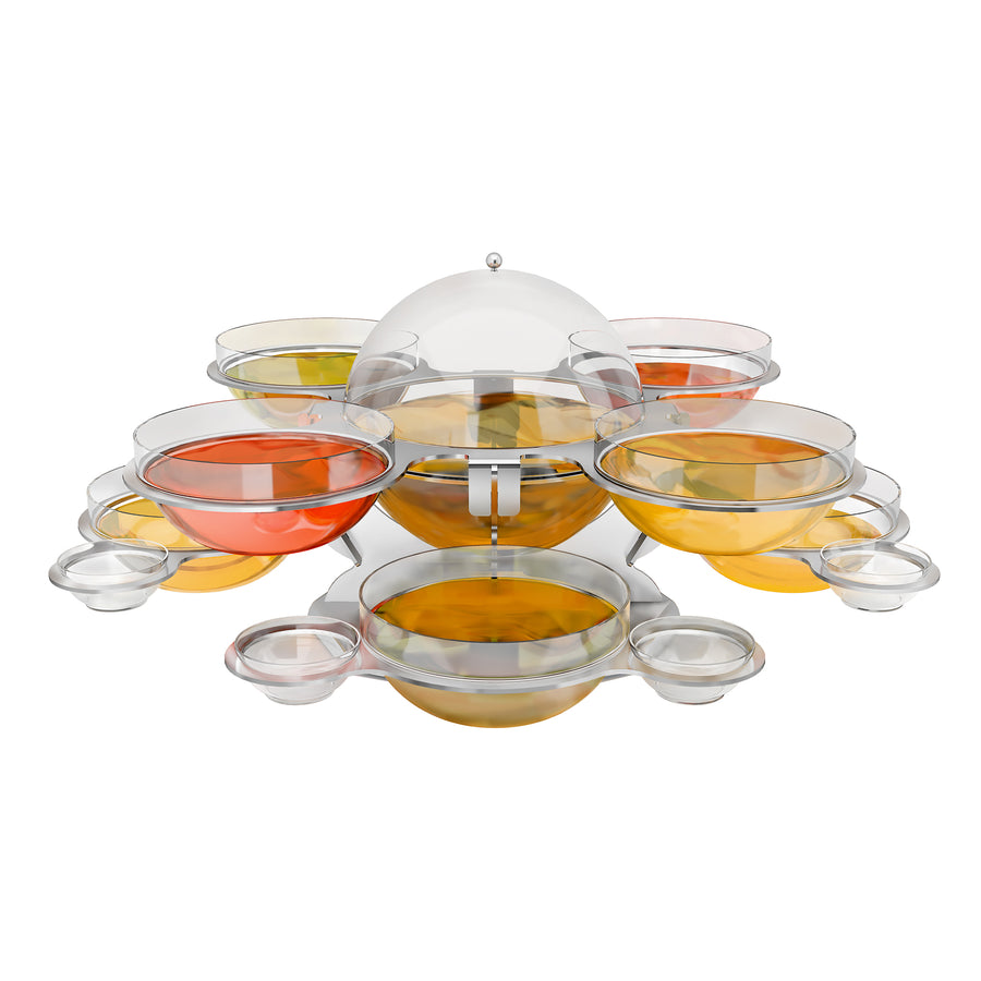 The Demountable Rotating Breakfast Fruit Stand from Bonna is designed to elegantly display a variety of fruits at breakfast buffets. Its innovative rotating feature allows for easy access, making it a practical addition to any hospitality setting. Crafted from durable stainless steel, this stand combines functionality with a sleek design, perfect for enhancing your table presentation.