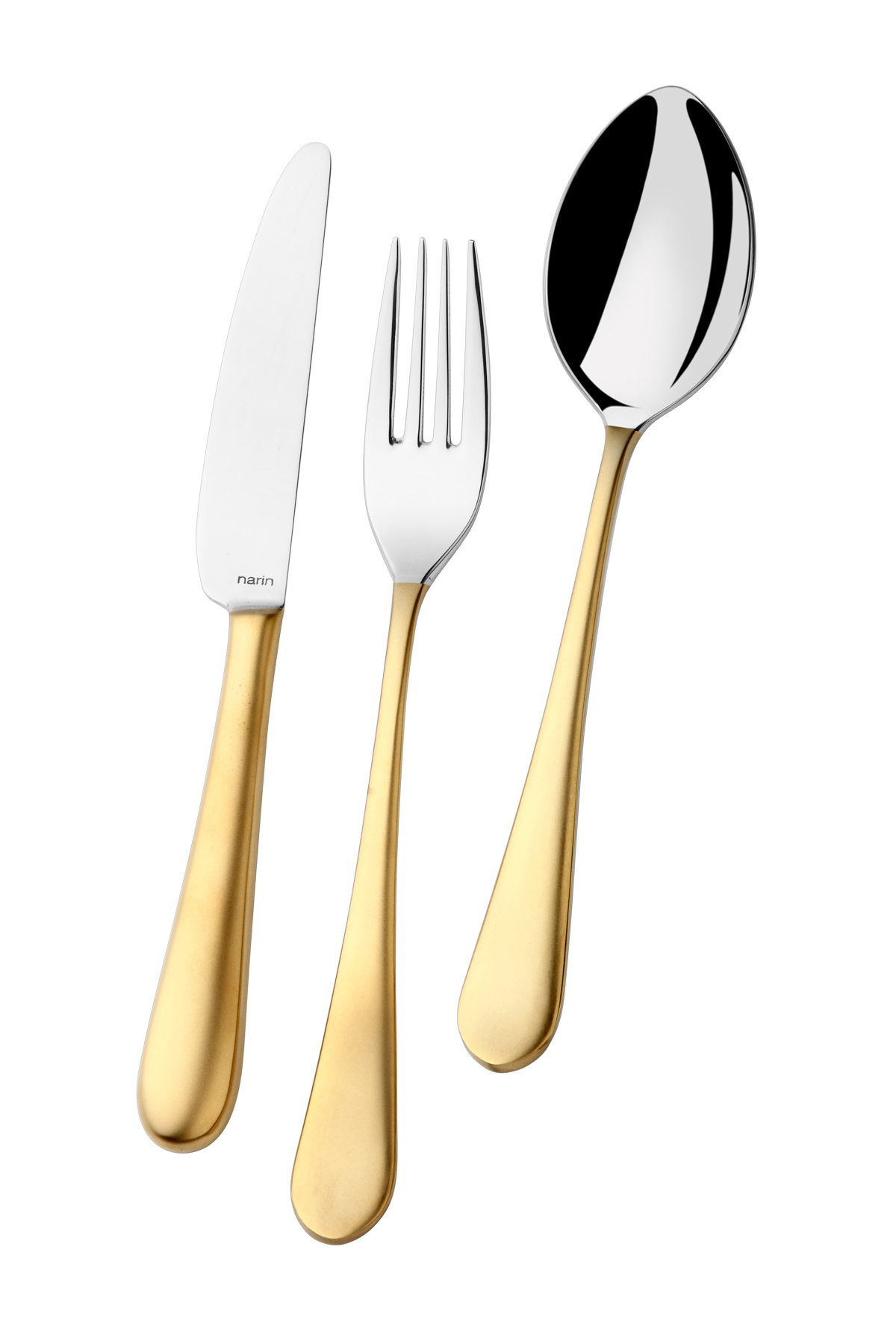 The Epsilon Series in Matte Gold by Kapp offers a luxurious touch to any dining experience. Crafted with high-quality stainless steel, this elegant tableware is designed to impress, making it perfect for upscale restaurants and special events. Its sophisticated matte finish enhances the aesthetic appeal while ensuring durability and ease of maintenance.