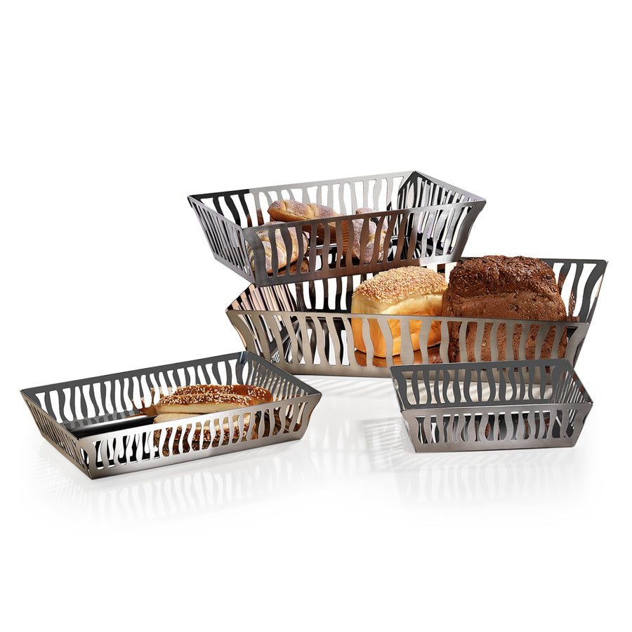 The Fire Bread Basket by Kapp is a versatile serving accessory, perfect for presenting bread or fruit varieties. Available in multiple sizes and finishes, including a shiny 'Elegance' surface and a serrated 'Nostalgia' surface, this basket is designed to enhance your table setting. With its durable Titanium PVD Coating, it is available in stunning colors such as gold, copper, and rainbow, ensuring a stylish addition to any dining experience.