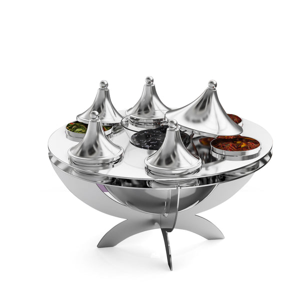 The Footed Caviar Presentation with 7 chambers is an elegant serving solution for gourmet dishes. Crafted from high-quality ceramic, it features a stylish footed design that elevates the presentation of caviar and other delicacies. Ideal for upscale dining experiences, this piece enhances both functionality and aesthetics on any table.