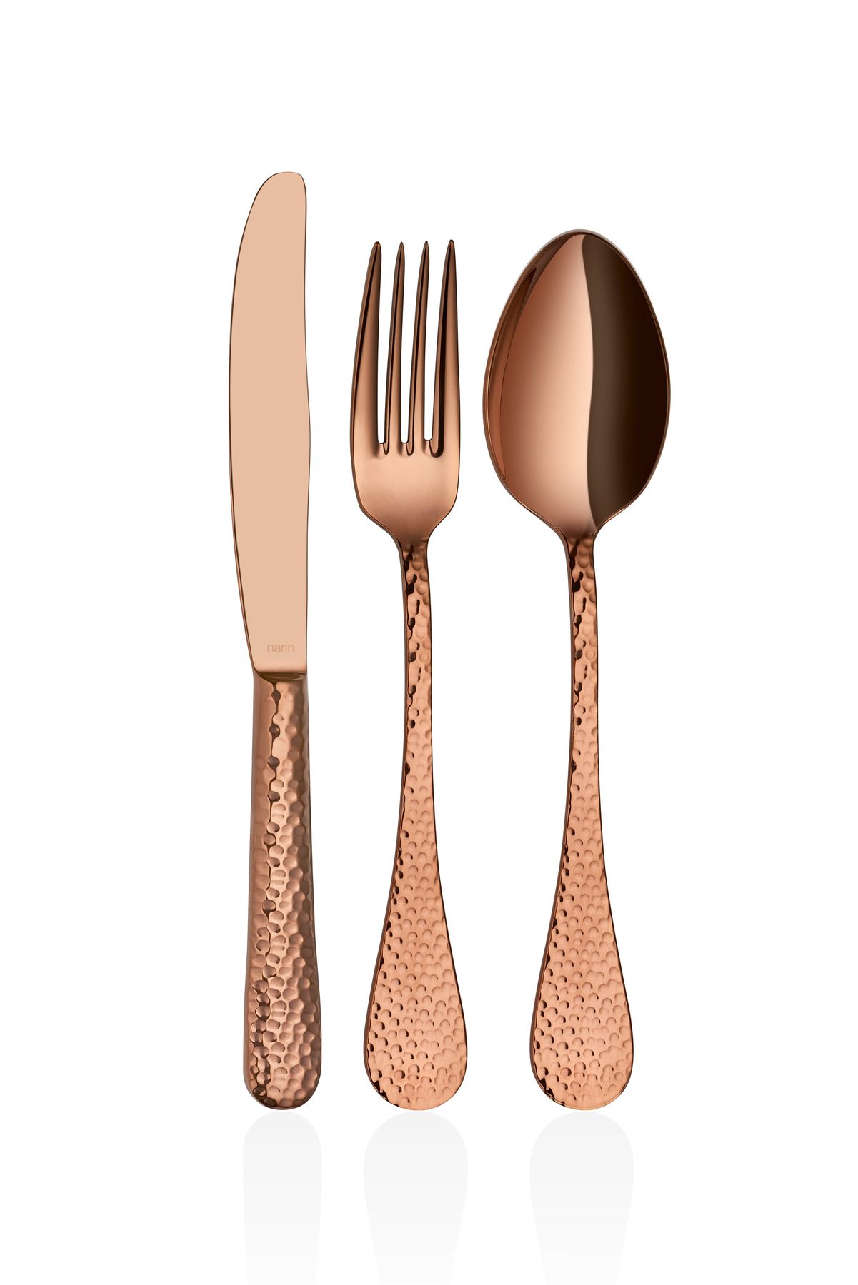 The Forged Series - Copper Titanium cutlery set by Kapp is crafted from high-quality 18/10 Cr-Ni stainless steel, ensuring durability and resistance to corrosion. This elegant collection offers various set options, making it perfect for any dining occasion. Hand washing is recommended to maintain the stunning finish of the titanium coating.
