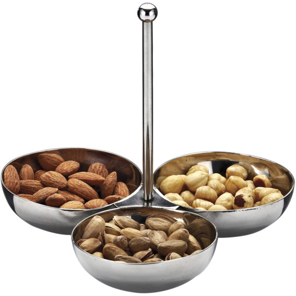 The Groovy Triple Steel Snack Bowl is a stylish and functional addition to any dining experience. Crafted from high-quality stainless steel, this bowl is perfect for serving snacks or appetizers in a modern and elegant way. Its unique triple design allows for versatile presentation, making it ideal for both casual and formal settings.