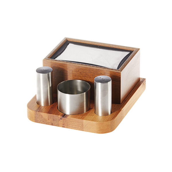 Groovy Wooden Dispenser Napkin Holder Salt Shaker Set