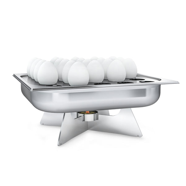The Heated Egg Holder with Stand and 25 Compartments is an essential addition to any breakfast service. Designed to keep eggs warm, it features a water tank and a heated structure, ensuring your guests enjoy their meals at the perfect temperature. With a durable Titanium PVD Coating, this holder is available in elegant gold, copper, and rainbow color options, making it both functional and stylish.