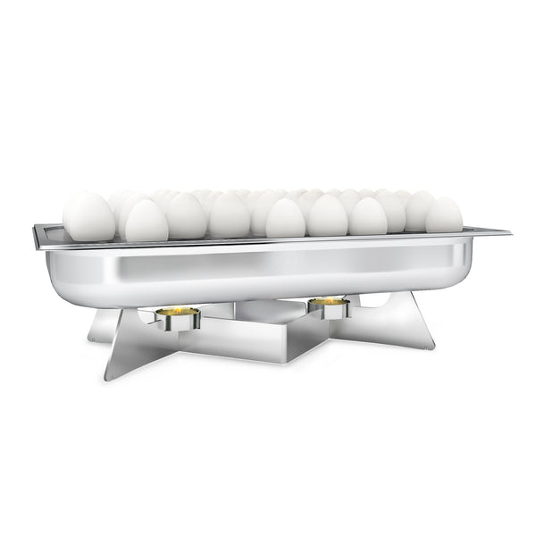 The Heated Egg Holder with Stand and 45 Compartments is designed to keep eggs warm, making it an essential addition to any breakfast service. Featuring a water tank and a heated structure, this holder ensures that eggs remain at the perfect temperature for serving. With a durable Titanium PVD Coating, it is available in elegant gold, copper, and rainbow color options, providing both functionality and style.