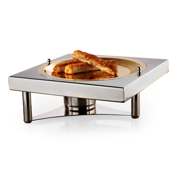 The Heater-Cooler Stand Round is an essential addition to any buffet setup, combining functionality with elegance. Designed for versatility, it can be used to keep food hot or cold by utilizing its fuel reservoir or by adding cooling gel or ice. With a durable Titanium PVD Coating, it is available in stunning gold, copper, and rainbow finishes, ensuring it complements any decor.