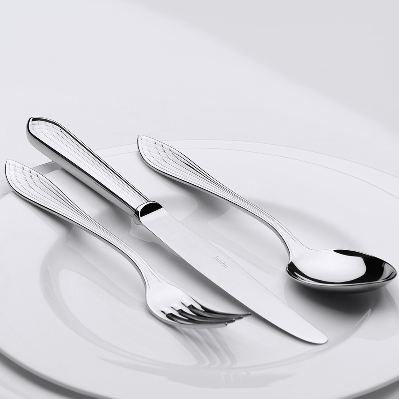 The Jumbo 4100 84-piece cutlery set is designed for 12 people, combining durability and style. Crafted from high-quality 18/10 stainless steel, it offers exceptional resistance to corrosion and wear, making it a reliable choice for any dining occasion. With elegant geometric details and a classic steel color, this set is perfect for both everyday use and special events, ensuring a memorable dining experience.