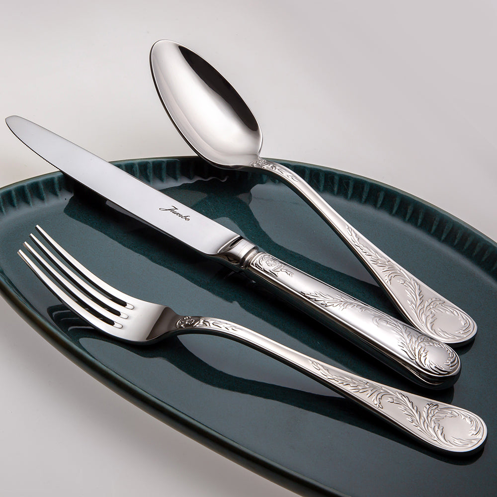 The Jumbo 9700 84 Piece Cutlery Set is designed to elegantly serve 12 people, making it perfect for both casual and formal dining occasions. Crafted from high-quality stainless steel, this set includes dinner spoons, forks, knives, dessert utensils, and tea spoons, ensuring a complete dining experience. Dishwasher safe for easy cleaning, this cutlery set combines functionality with a sleek design.