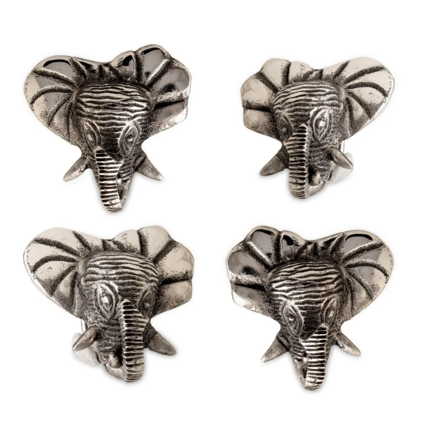The Jumbo Deep Sea Napkin Ring set adds a touch of elegance to your dining experience. Made from durable aluminum in a sleek steel color, this set of four napkin rings is perfect for enhancing table settings. Hand washing is recommended to maintain their pristine appearance.