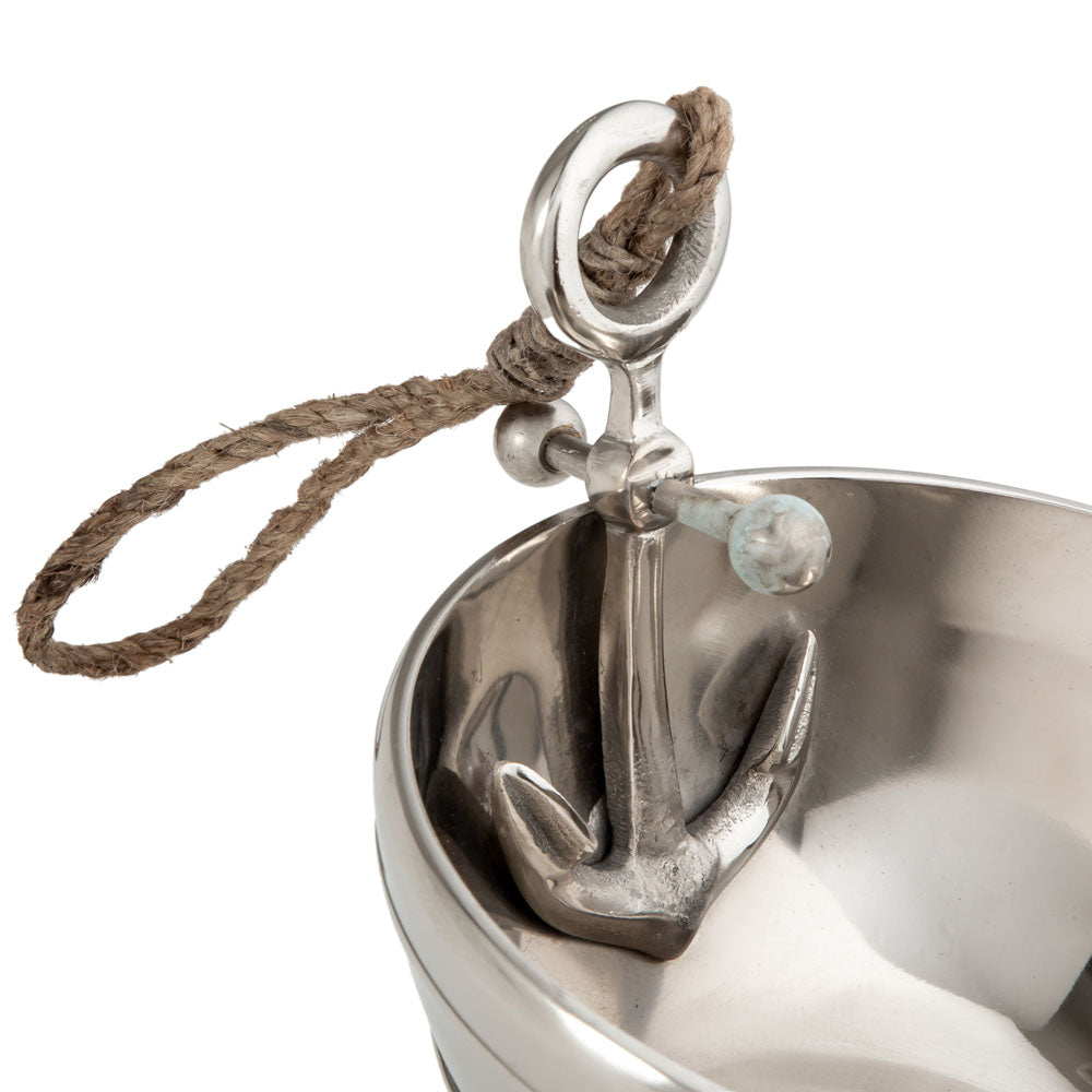 The Jumbo Deep Sea Anchor Decorative Bowl is a stunning piece designed to enhance your table setting. Crafted from aluminum, this decorative bowl is perfect for adding a nautical touch to your decor. It is recommended to serve it with a paper or napkin underneath to avoid direct contact with food, ensuring longevity and maintaining its aesthetic appeal.
