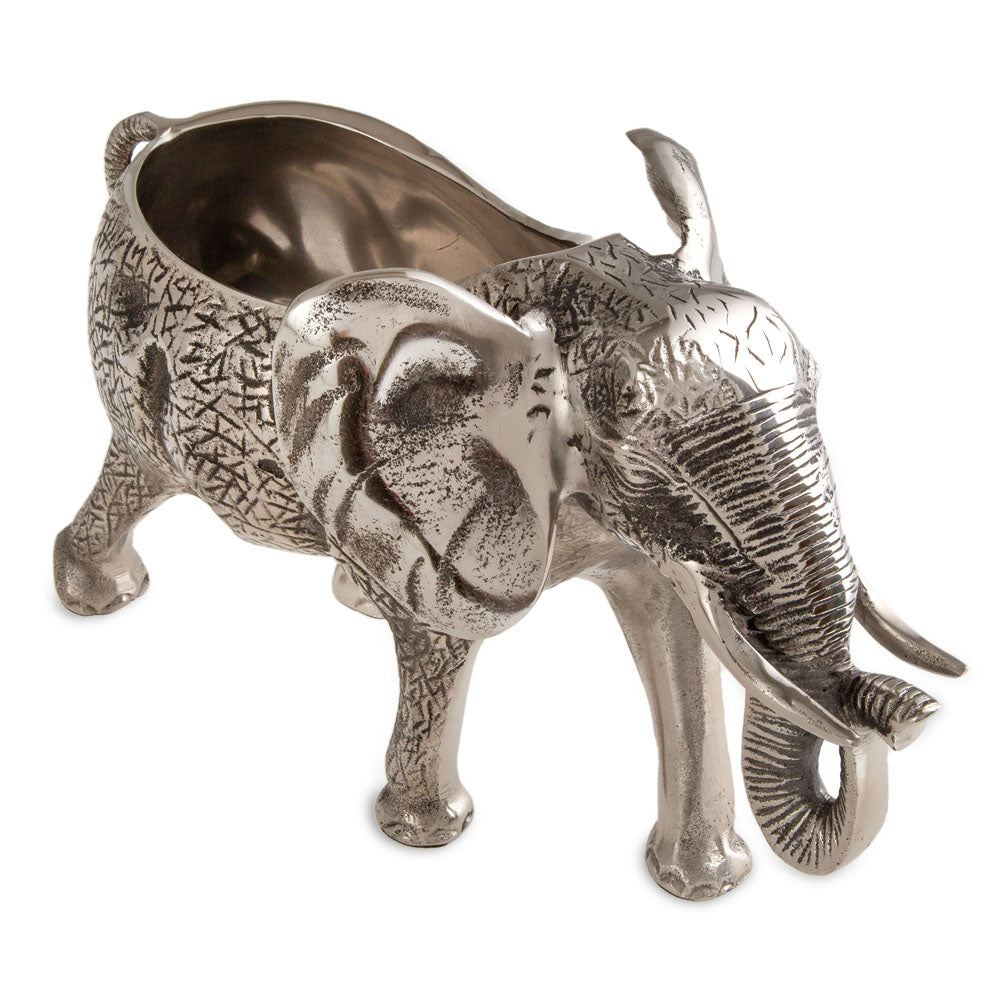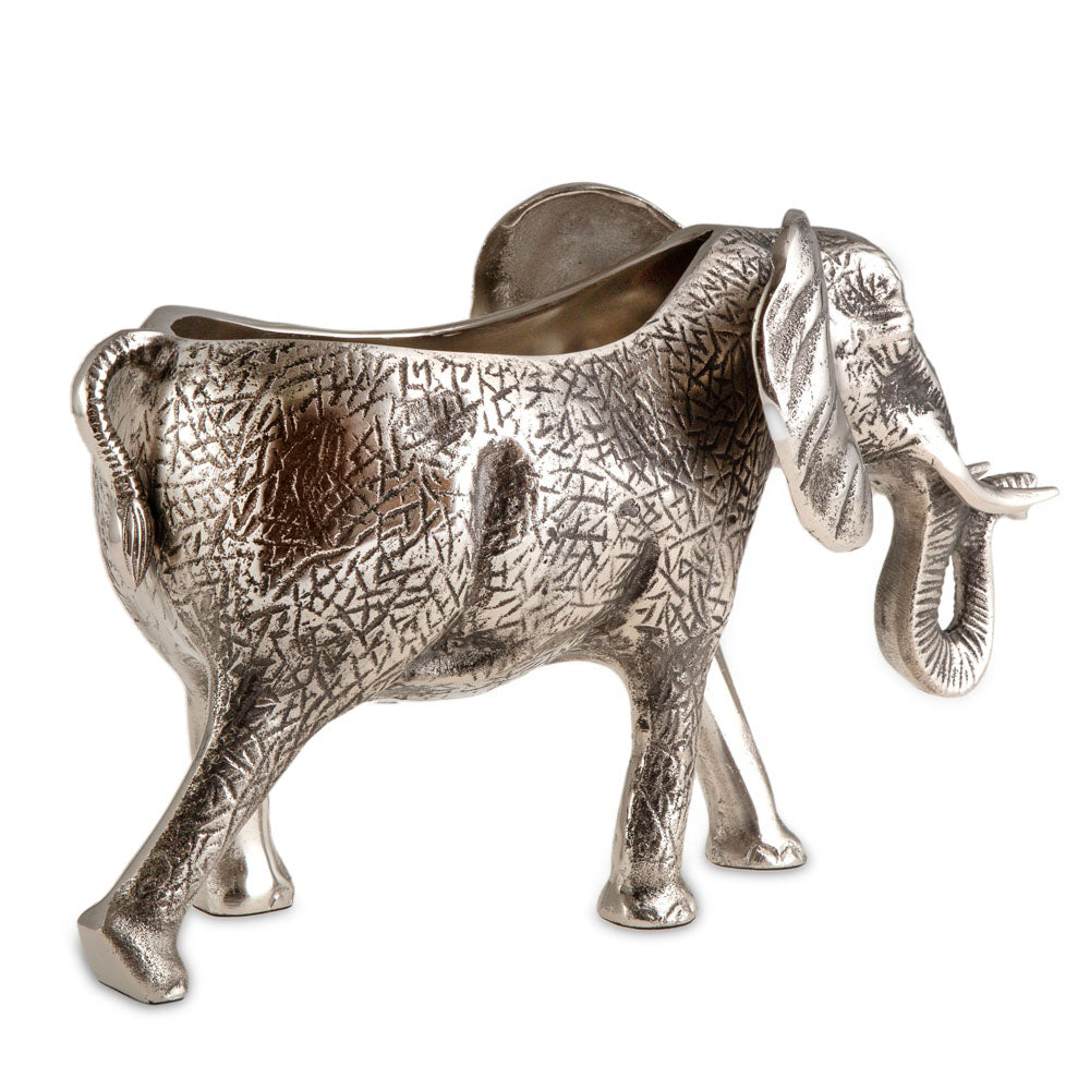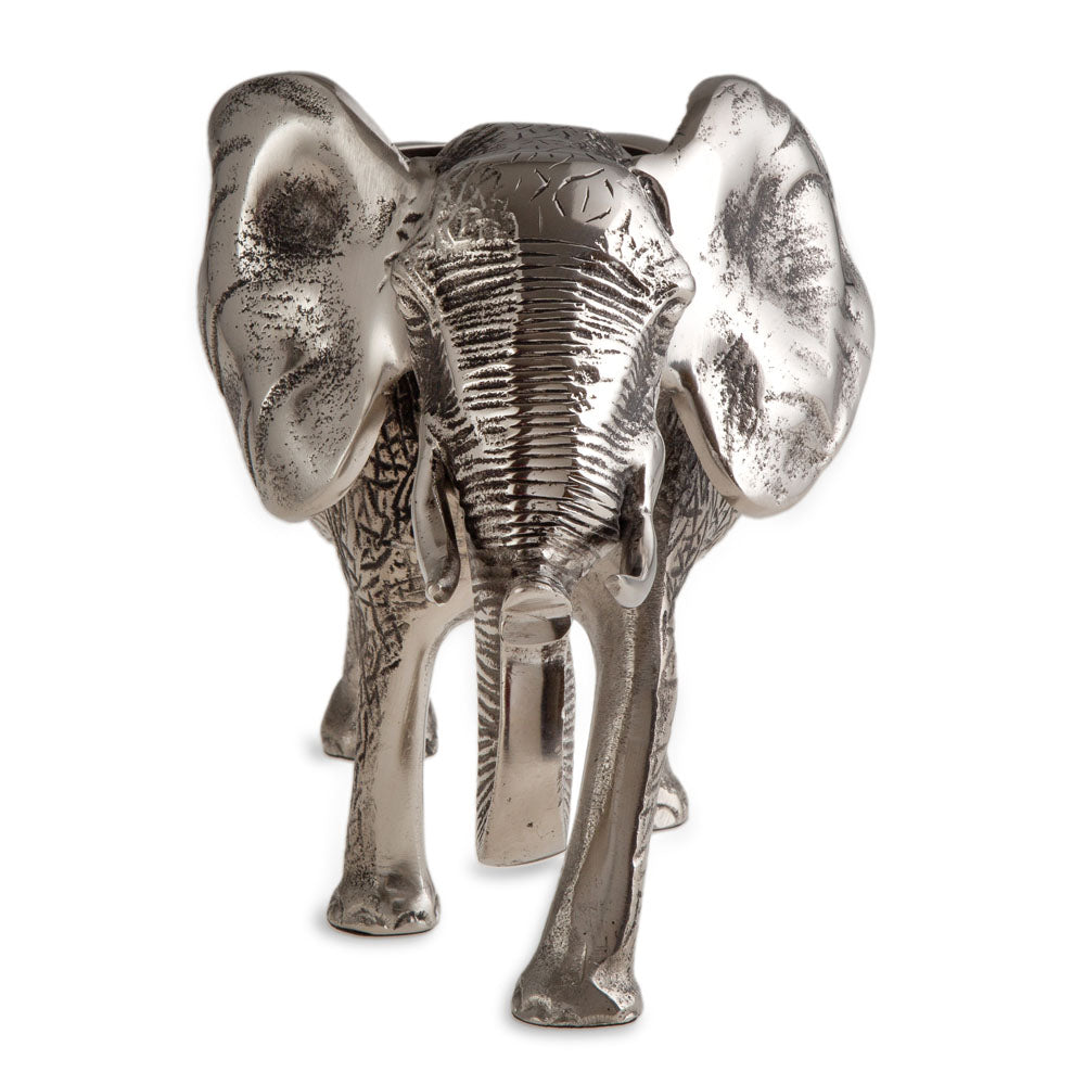The Jumbo Deep Sea Elephant Bottle Holder is a unique and decorative piece designed to enhance your serving experience. Crafted from aluminum, it adds a whimsical touch to any table setting. It is recommended to use a serving paper or napkin underneath to avoid direct contact with food and to ensure long-lasting use. Please note that this product is not heat resistant and should be cleaned with a damp cloth.