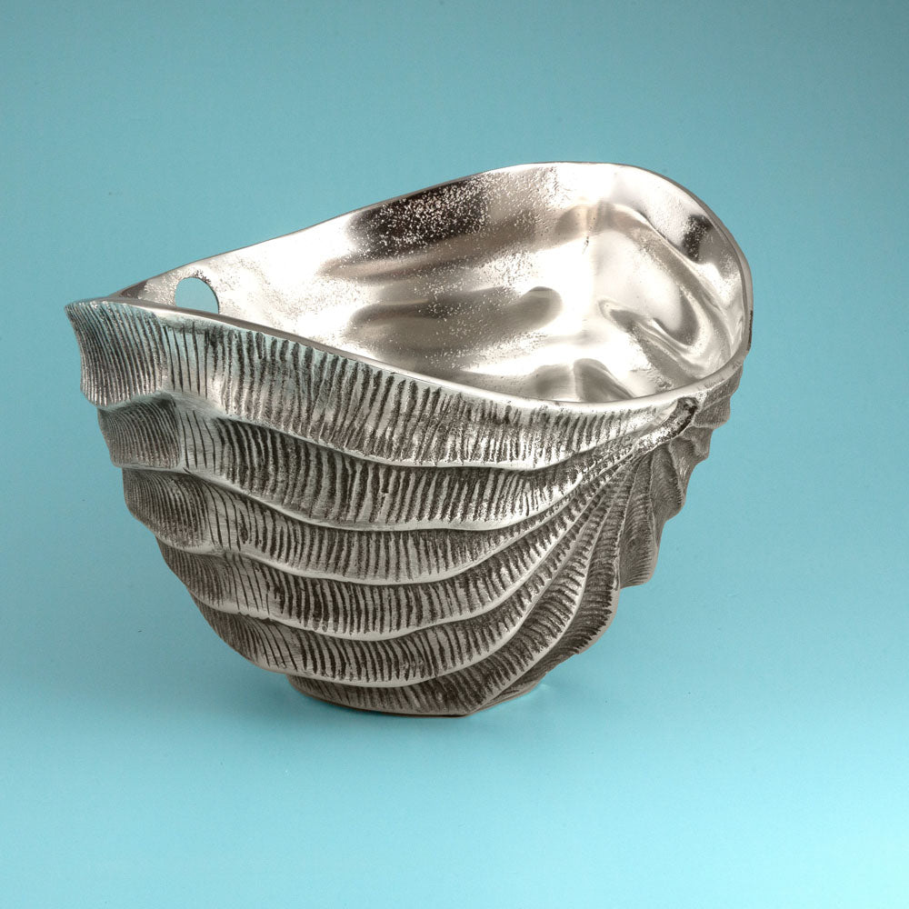 The Jumbo Deep Sea Shell Bottle Holder is a stylish and functional accessory designed to enhance your serving experience. Crafted from durable aluminum, this decorative piece is perfect for holding bottles while adding a touch of elegance to your table setting. It is recommended to place a serving paper or napkin underneath to avoid direct contact with food and ensure long-lasting use.