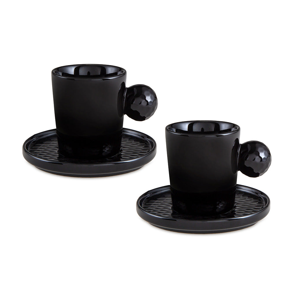 Jumbo Golf Line Black 2-Piece Coffee Cup Set with Saucer 90 ml