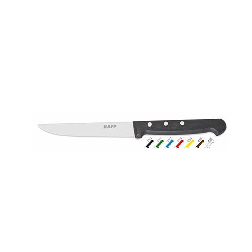The Kapp Butcher Knife is expertly crafted from high-quality stainless steel, ensuring durability and precision in every cut. With a blade length of 12.5 cm, this knife is designed for professional chefs and culinary enthusiasts alike, providing a comfortable grip and exceptional control. The vibrant blue handle adds a touch of style to your kitchen tools.