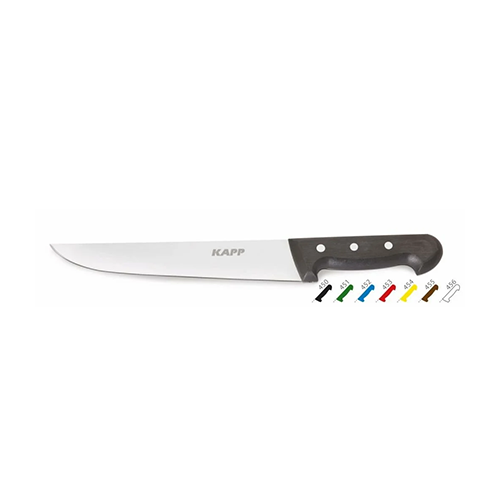 The Kapp Butcher Knife is expertly crafted from high-quality stainless steel, ensuring durability and precision for all your culinary needs. With a 14.5 cm blade, this knife is designed for efficient cutting and slicing, making it an essential tool for any professional kitchen. Its sleek white handle provides a comfortable grip, allowing for extended use without fatigue.