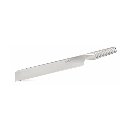 The Kapp Cheese Knife is expertly crafted from high-quality stainless steel, ensuring durability and precision for cutting through various types of cheese. With a length of 17.5 cm, this knife features a stylish brown handle that provides a comfortable grip, making it an essential tool for any cheese lover or culinary professional. Perfect for serving cheese platters at restaurants or events.