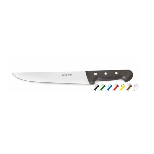 The Kapp Chopping Knife features a sleek black design and a 16 cm stainless steel blade, perfect for precision cutting in any kitchen. Its ergonomic handle ensures comfortable use, making it an essential tool for both professional chefs and home cooks alike.