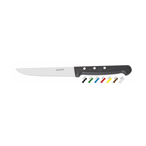 The Kapp Chrome Chef's Knife is a professional-grade kitchen tool designed for precision and durability. With a 17 cm blade made of high-quality chromium, it provides excellent cutting performance. The sleek black handle ensures a comfortable grip, making it ideal for both home cooks and professional chefs.