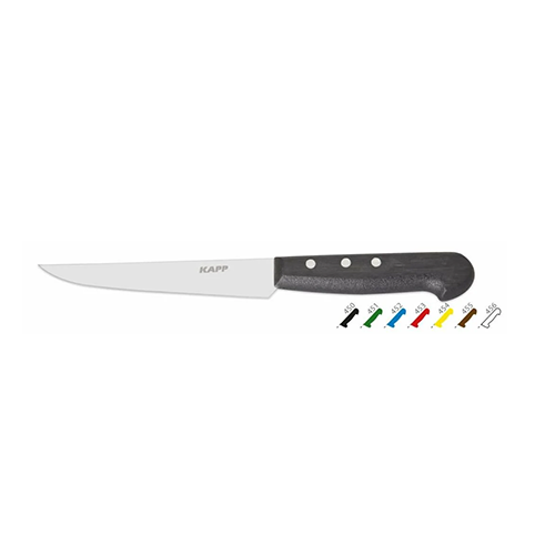 The Kapp Chrome Chef's Knife features a durable chromium blade, perfect for professional chefs and culinary enthusiasts. With a comfortable blue handle, this 17 cm knife offers precision and control for all your cutting needs. Ideal for slicing, dicing, and chopping, it is an essential tool in any kitchen.