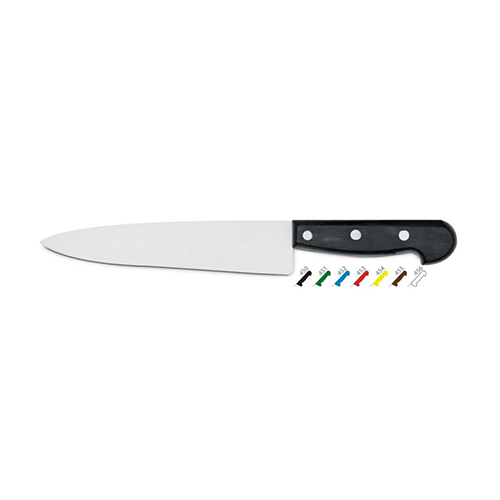 The Kapp Chrome Chef's Knife is an essential kitchen tool designed for precision and durability. With a 21 cm blade made of high-quality chromium, this knife ensures excellent cutting performance. Its sleek white handle provides a comfortable grip, making it ideal for both professional chefs and home cooks alike.