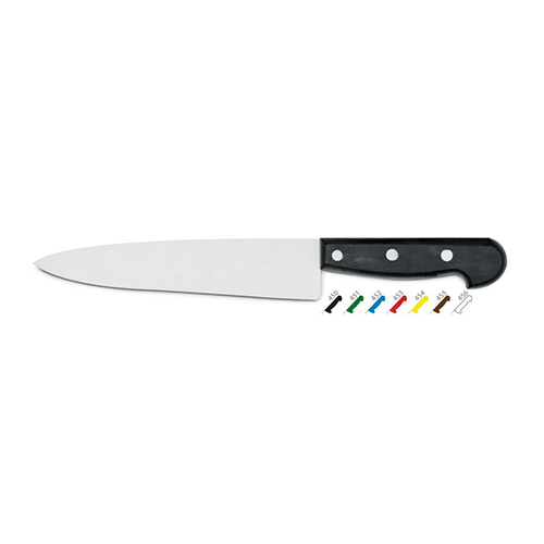 The Kapp Chrome Chef's Knife features a durable stainless steel blade that ensures precision and longevity in the kitchen. With a comfortable yellow handle, this knife is designed for professional chefs and culinary enthusiasts alike, making food preparation effortless and efficient.