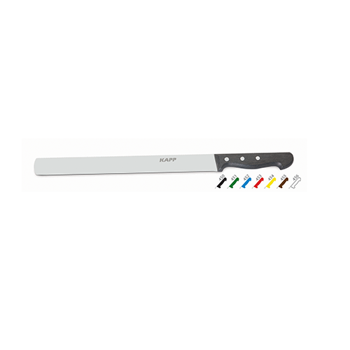 The Kapp Ham Knife is expertly designed for precision slicing, featuring a 30 cm stainless steel blade that ensures sharpness and durability. Its ergonomic black handle provides a comfortable grip, making it ideal for professional kitchens and culinary enthusiasts alike. This knife is perfect for slicing ham and other meats with ease and accuracy.