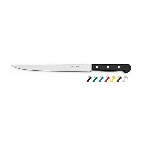 The Kapp Lakerda Knife is expertly crafted from high-quality stainless steel, ensuring durability and precision for all your culinary needs. With a sleek black handle and a 25 cm blade, this knife is designed for both professional chefs and home cooks alike, providing a comfortable grip and excellent control. Ideal for slicing and preparing various ingredients, it combines functionality with a modern aesthetic.
