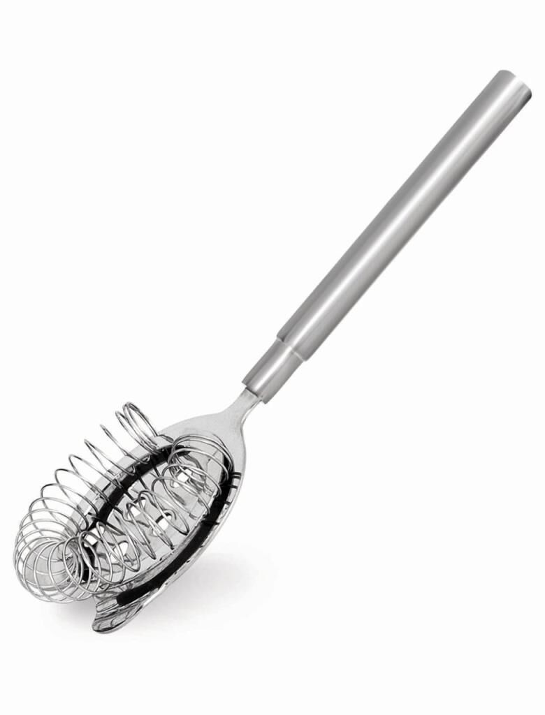 The Kapp Large Bar Strainer is a professional-grade Hawthorne strainer designed for efficiency in cocktail preparation. Its large size fits standard shakers and mixing glasses, ensuring a clean and precise pour every time. The tight coil effectively retains ice and muddled ingredients, making it an essential tool for any bartender.