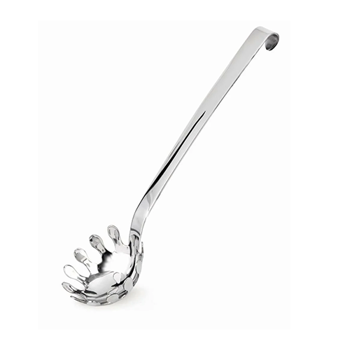 The Kapp Spaghetti Spoon is an essential kitchen tool designed for serving spaghetti and other pasta dishes. Crafted from high-quality stainless steel, it offers durability and a sleek appearance. Its ergonomic design ensures comfortable handling, making it perfect for both professional kitchens and home use.