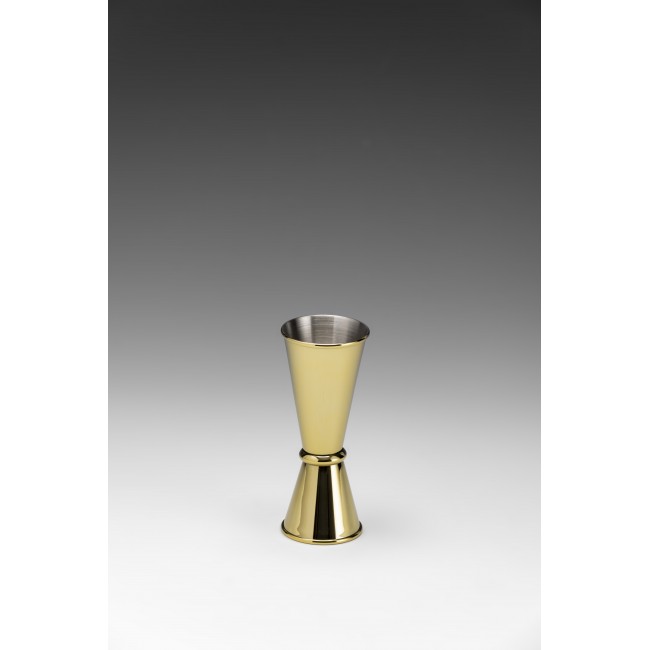 The Kapp Steel Jigger Gold is an essential bar tool designed for precision and style. With a dual capacity of 25 ml and 50 ml, this jigger is crafted from high-quality gold-plated stainless steel, offering both durability and a luxurious appearance. Perfect for measuring ingredients with accuracy, it adds a touch of elegance to any bar setup.