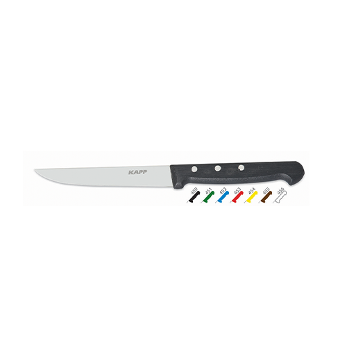 The Kapp Vegetable Knife is designed for precision and efficiency in the kitchen. With a sharp stainless steel blade measuring 12 cm, it is perfect for slicing and dicing vegetables with ease. The ergonomic black handle ensures a comfortable grip, making it an essential tool for both professional chefs and home cooks.