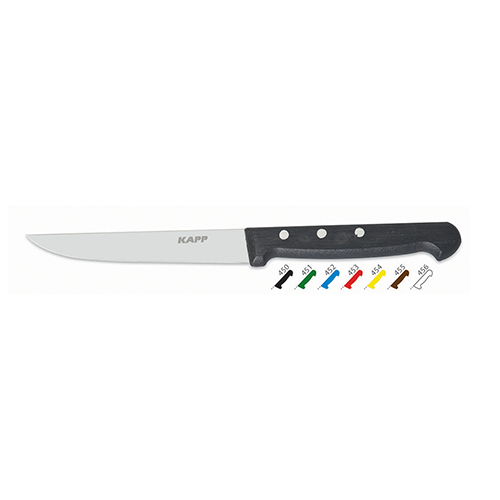The Kapp Vegetable Knife features a sharp stainless steel blade, ideal for precision cutting of vegetables. Its compact 9 cm size allows for easy handling and control, making it a perfect addition to any kitchen. The blue handle adds a touch of style while ensuring a comfortable grip during use.
