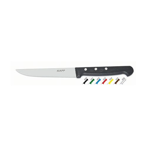 The Kapp Vegetable Knife features a sharp stainless steel blade measuring 9 cm, ideal for precision cutting of vegetables. Its ergonomic red handle ensures a comfortable grip, making it a perfect addition to any kitchen. This knife is designed for both professional chefs and home cooks, delivering exceptional performance and durability.
