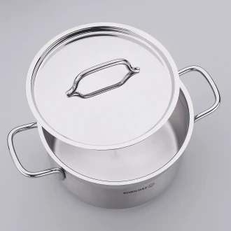 The Korkmaz Alfa Short Pot is crafted from high-quality 18/10 Cr-Ni stainless steel, ensuring durability and resistance to corrosion. With a three-layer triplex capsule base, it provides optimal heat distribution for efficient cooking on all stove types, including induction. The pot features extra thick handles and knobs that remain cool to the touch, making it safe and easy to handle. Its polished exterior not only enhances its aesthetic appeal but also makes cleaning a breeze, as it is dishwasher safe.